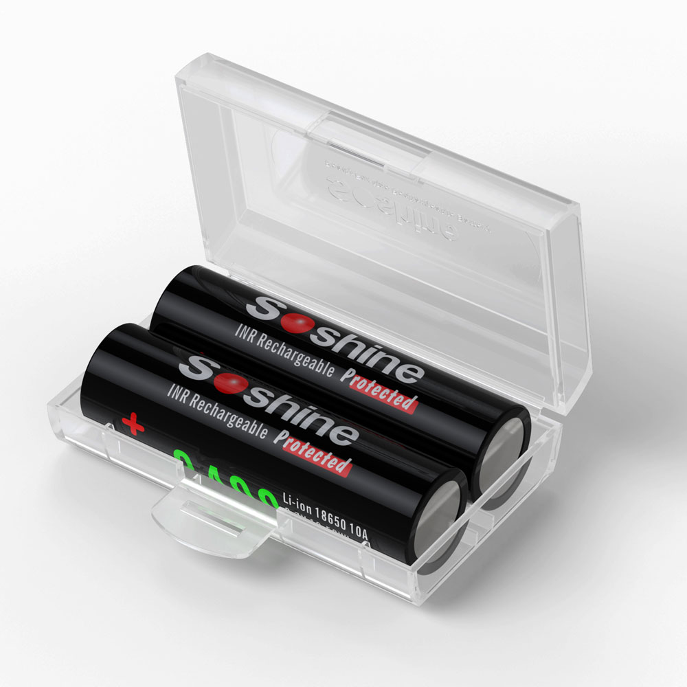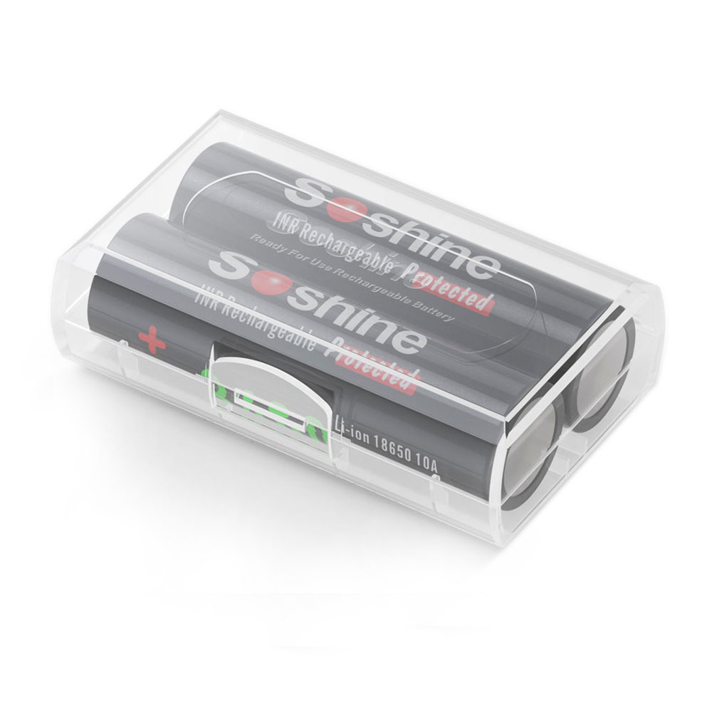 Soshine Battery Storage Case for 2 18650 Batteries or 4 RCR123 Batteries Bar Code:6951151533036 Model:18650x2(SBC-012) - Package included: Battery Storage Case. - Can storage 2pcs 18650 or 4pcs RCR123 batteries. - Battery storage box only,battery not include. - Easy to open or close,convenient to use. - Made of high quality plastic,its very durable. Product details: