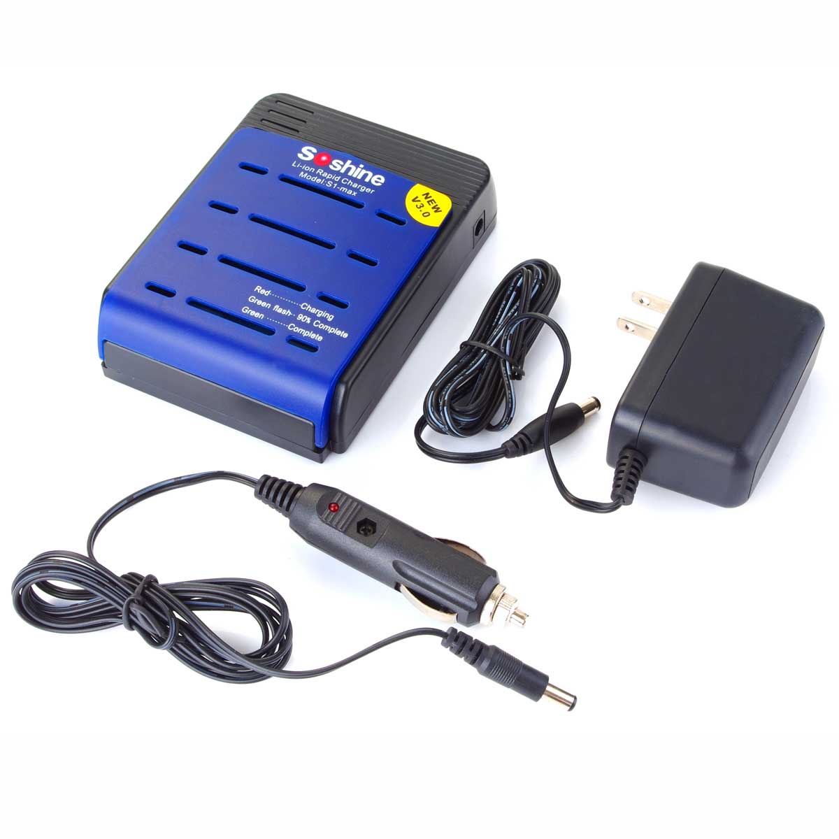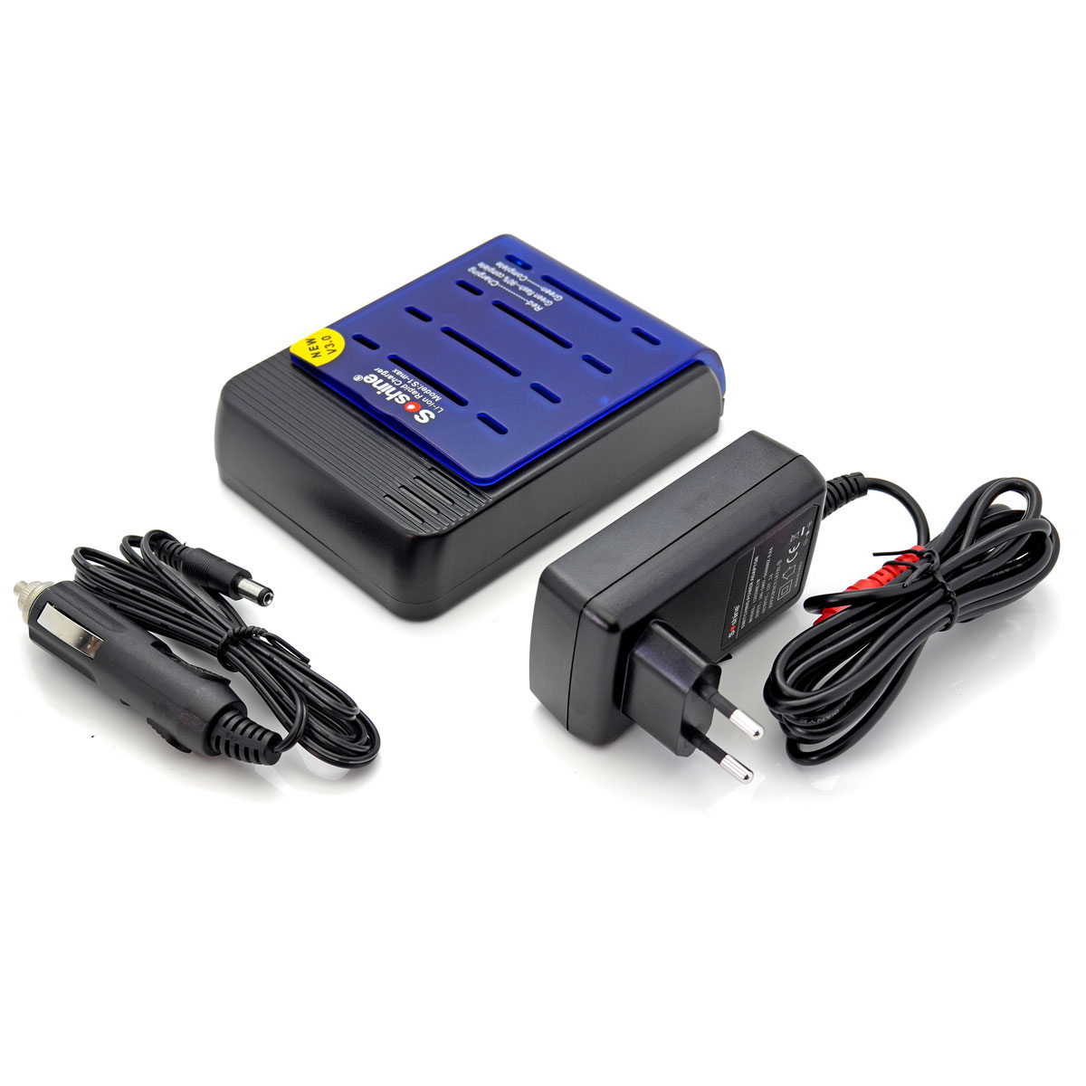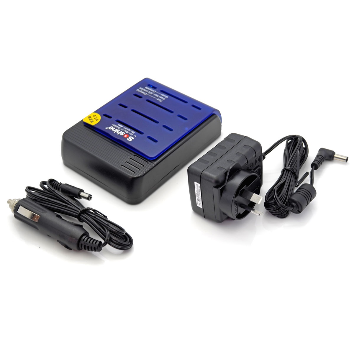 Specification: Adaptor: Input: AC100-24V 50/60Hz Output: DC12V 1800mA /DC24V 1000mA DC car adapter: 12V DC out: 4.2V 1x 1000mA, 2x 1000mA, 3x 1000mA, 4x1 000mA Using an adaptor that does not meet these specifications could damage the charger or the adaptor