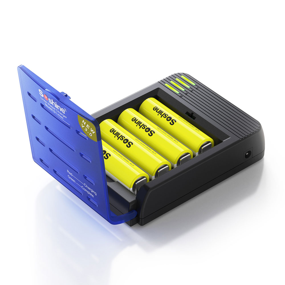 Power supply: Protect the power supply cable for the adaptor against the risk of being trodden on, pinched or folded, particularly near the sockets and the connection with the device. Keep out of the reach of children or pet. To disconnect the power supply cable, pull on the plug and not on the cord. If the power supply cable is damaged, stop using the device immediately. Tips: It is normal for batteries to warm up while charging. They will cool down after they are charged. Not charging all the way? 1 Gently rubs battery ends with a clean pencil eraser or cloth to remove any residue 2 Loose connections between battery and charger replace battery into the battery compartment; turn the battery until LED from green turn red. 3 Polarity reversed; load the battery into charger in right side until LED from green turn red. Warning: To avoid personal injury and property damage from, but not limited to, the risk of electric shock or fire: Charge only rechargeable Lithium-Ion batteries. Charging any other types of batteries may cause them to leak, rupture or explode. Do not open battery, dispose of in fire, put in backwards, mix with used or other battery types or short circuit-may ignited, explode, leak or get hot injury Use the charger only in dry locations. Keep away from rain, snow or excessive moisture. Do not operate the charger if damaged Do not disassemble, modify any part of the charger ,or attempt to use the chargers as power source Always unplug the charger from outlet before attempting maintenance or cleaning, This charger is not a toy and should not be used by children or infirm persons without adequate training or supervision. Approve: adaptor UL CE EK PSE SAA Material: ABS ROHS One year warranty This Soshine product is warranted only to the original purchaser upon presentation of proof of purchase, to be free from defects in materials and workmanship for one year from date of original purchase provided that no other repairs, alterations or modifications had been attempted by unauthorized personnel. Not applicable to damage caused by normal wear and tear or misuse. Repair or replace of charger at Soshine option. For more information, please contact your nearest Soshine sales Soshine 18650 charger S1 instruction manual download: http://www.soshine.com.cn/Down35.aspx