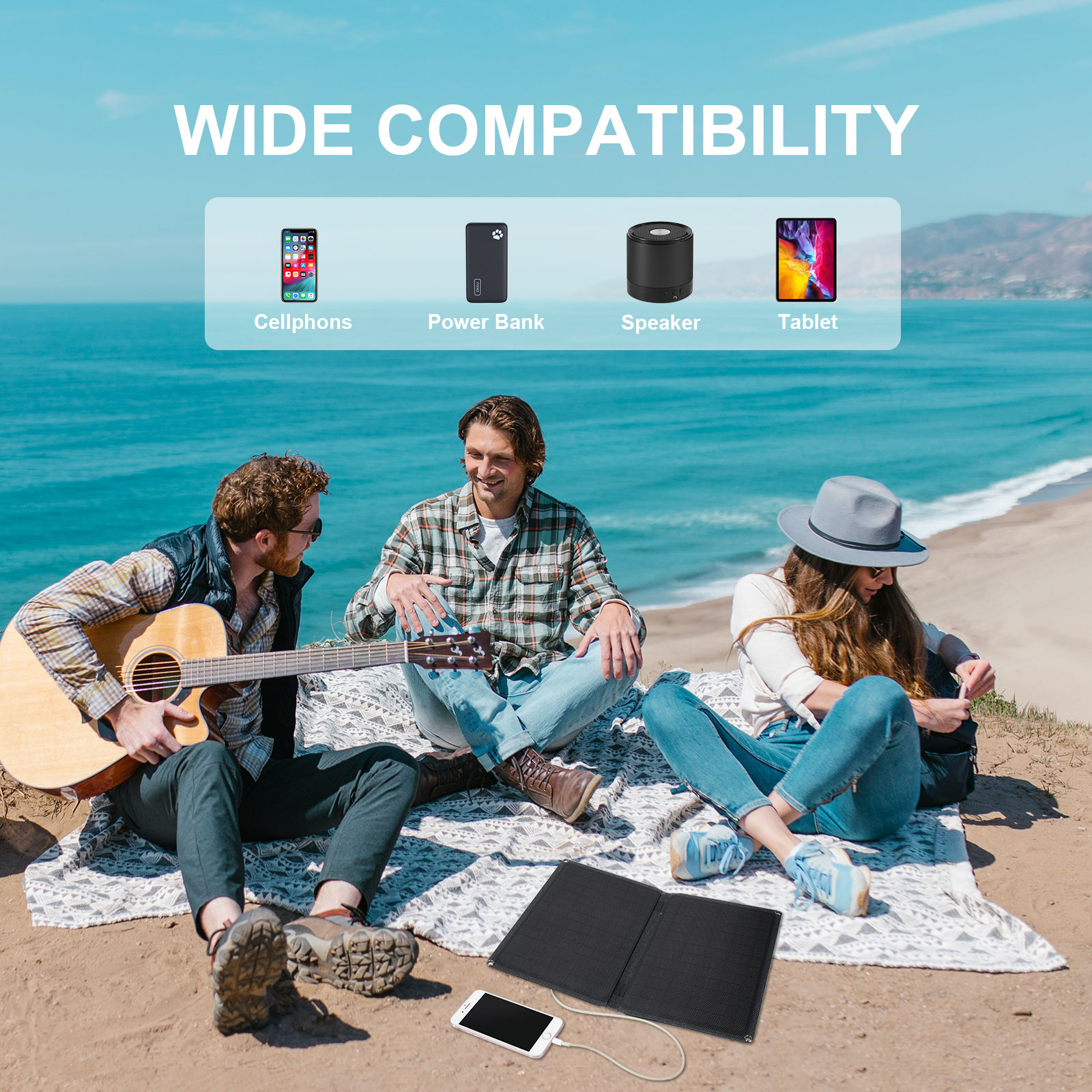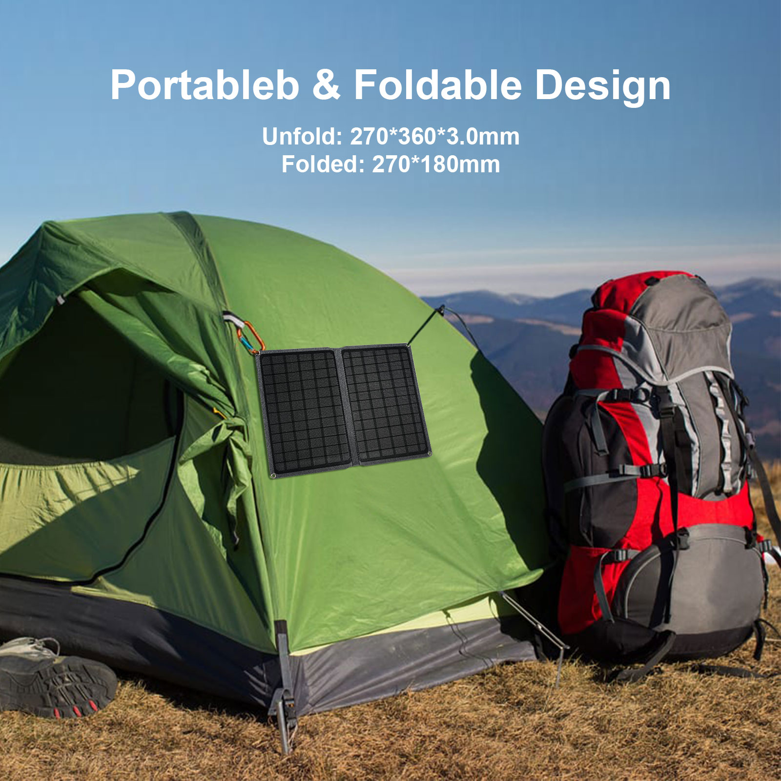 Waterproof Foldable Solar Charger 10W Solar Panel with USB Camping Travel Charger Compatible iPhone iPad, Galaxy S9 S8 Edge Plus, Note, LG, Nexus and More Model: SC10W Bar code: 6951150581006 Features: High Energy Conversion: Highly efficient solar cells convert up to 20% of solar power into free energy. Highly Durable: Integrated ETFE lamination panel features an IPX5 waterproof rate, making it perfect for outdoor use; the charging temperature is:-20℃~+70℃. Charge Smarter: With build-in smart IC chip, automatically recognize your devices to provide the optimal charging current to minimize charging time (up to 1.9A max ). Portable & Lightweight: Ultra-thin and foldable design makes it easy to carry. Specifications: Power: 10W Open circuit voltage: 6.3V Short Circuit current: 2.1A Voltage regulator tube output: 5V Operating Current: 1.9A Expand Dimensions (LxWxH):34.9 x 26.7 x 0.25 cm Folding Dimensions (LxWxH):26.7 x 17.5 x 0.25 cm Package Dimensions(LxWxH):31 x 22 x 0.5 cm Weight:430g Package weight:450g Operating Temperature:-20℃~+70℃ |