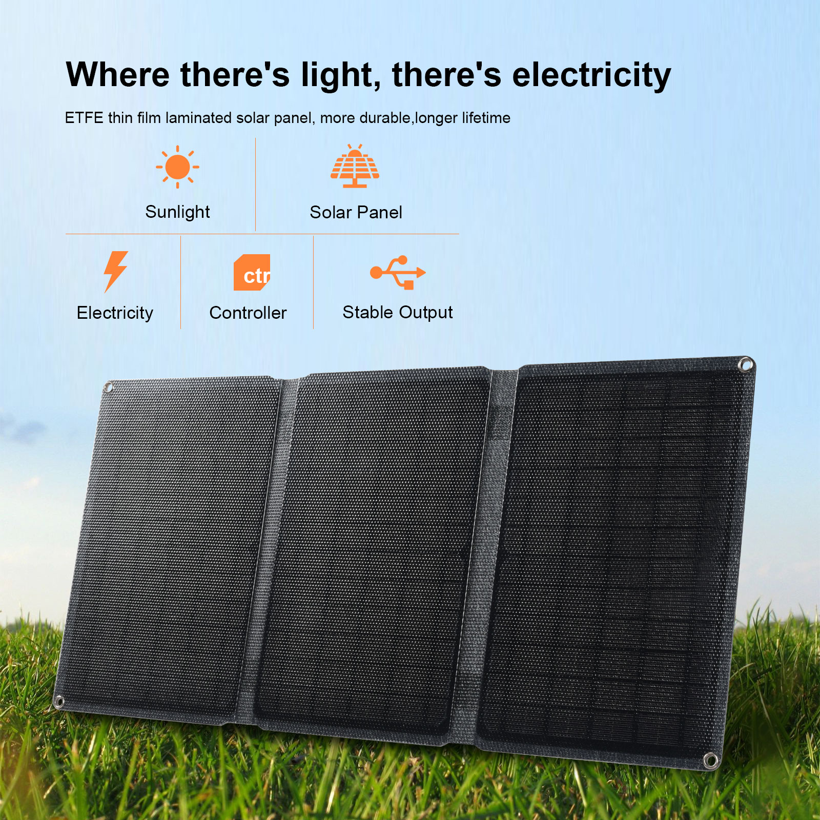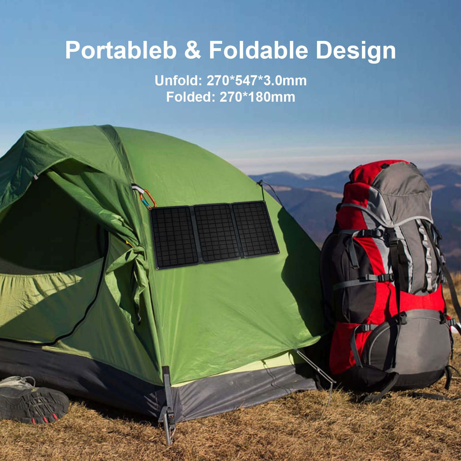 Solar Charger 20W Solar Panel with Dual USB Port Waterproof Foldable Camping Travel Charger Compatible iPhone, iPad, Galaxy, Note, LG, Nexus and More Model: SC20W Bar code: 6951150581013 Features: High Energy Conversion: High efficient solar cells convert up to 20% of solar power into free energy. Highly Durable: Integrated ETFE lamination panel features an IPX5 waterproof rate, making it perfect for outdoor use; the charging temperature is:-20℃~+70℃ Charge Smarter: With build-in smart IC chip, automatically recognize your devices to provide the optimal charging current to minimize charging time (up to 3A max ) Highly Portable : Benefit from free solar energy in a lightweight foldable format you can always carry with you no matter where you go. Specifications: Power: 20W Open circuit voltage: 7.6V Short Circuit current: 3.3A Voltage regulator tube output: 6.4V Operating Current: 3A Expand Dimensions (LxWxH):59.4 x 27.8 x 0.25 cm Folding Dimensions (LxWxH):27.8 x 20 x 0.25 cm Package Dimensions(LxWxH):33 x 24 x 0.8 cm Weight:850g Package weight:490g Operating Temperature:-20℃~+70℃ |