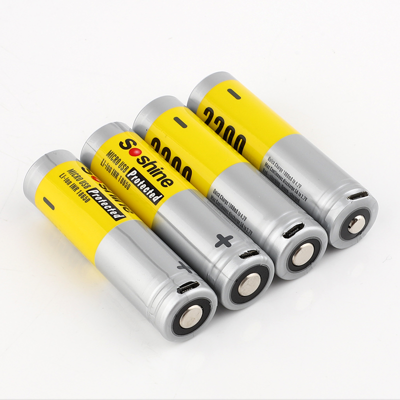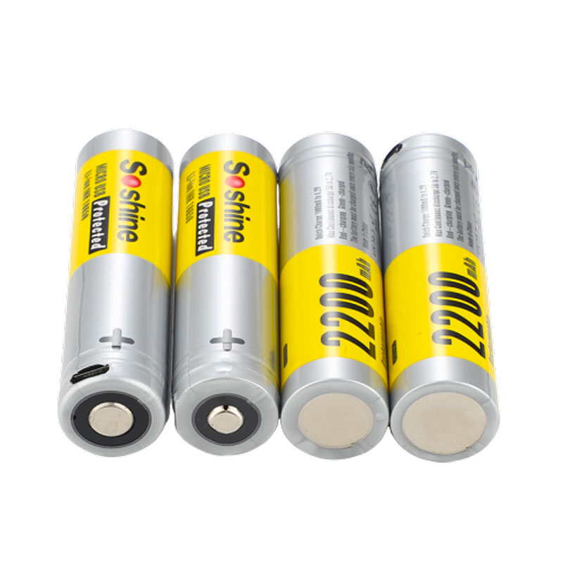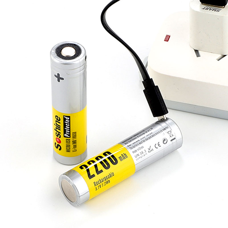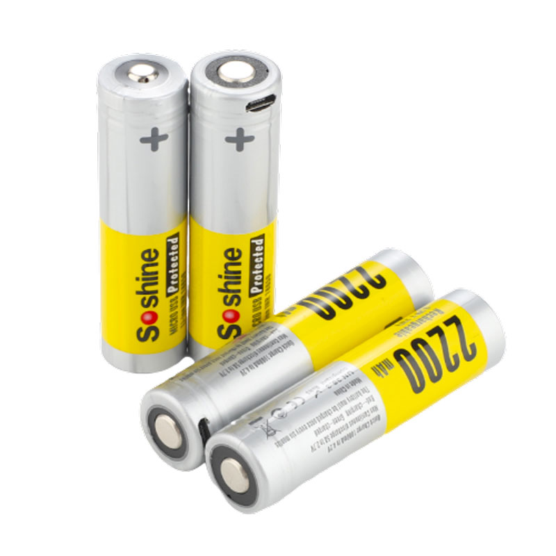 Soshine USB Rechargeable Batteries 3.7V 2200mAh Li-ion 18650 Batteries