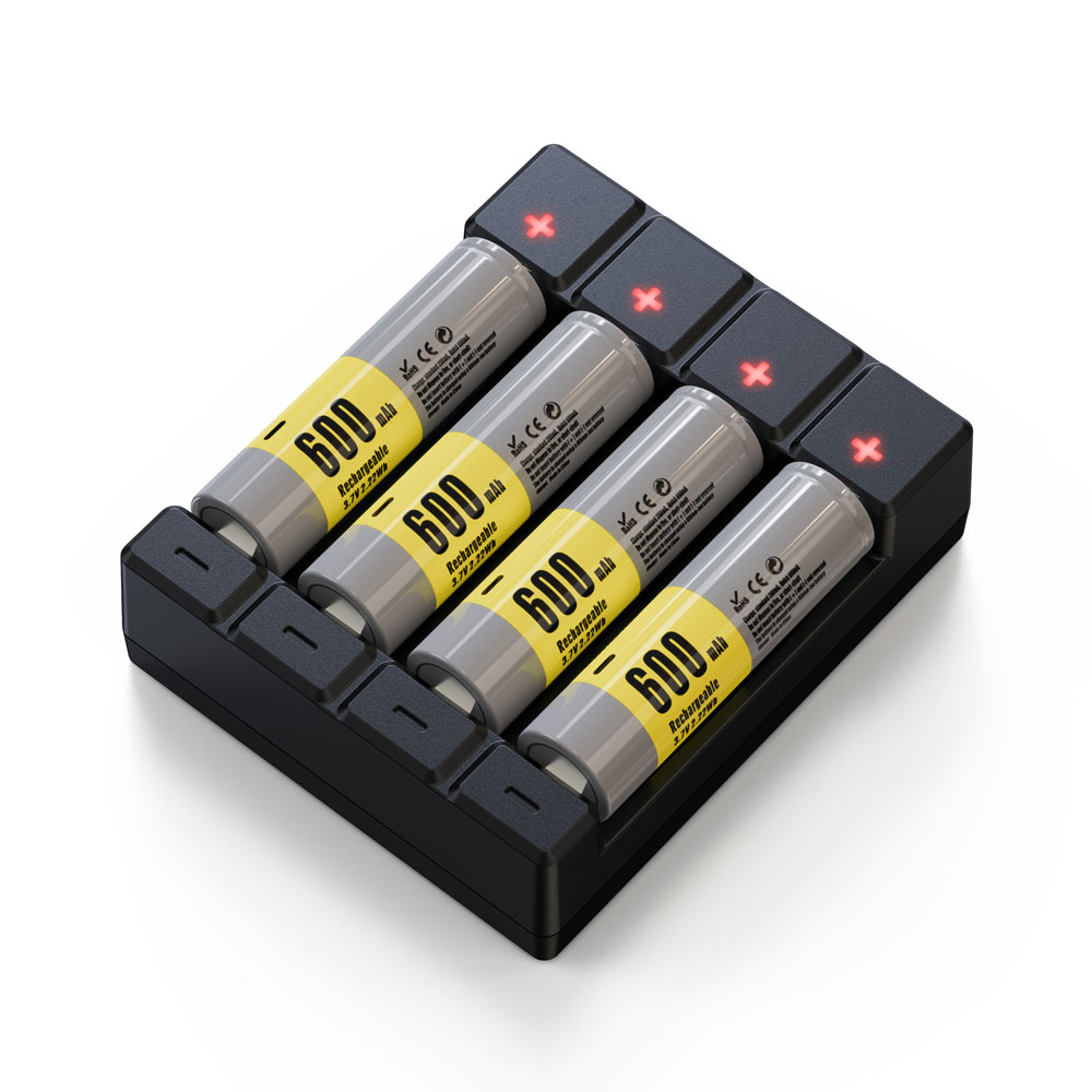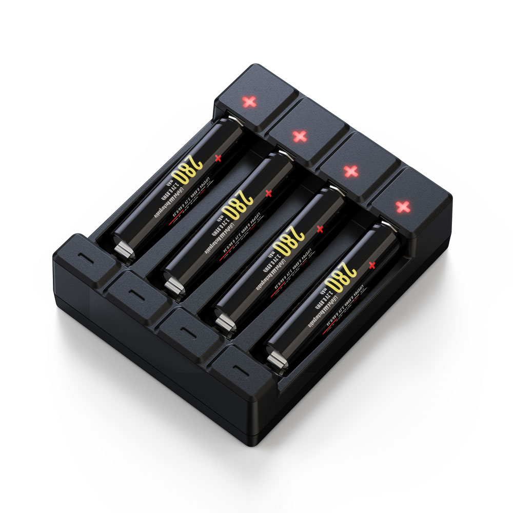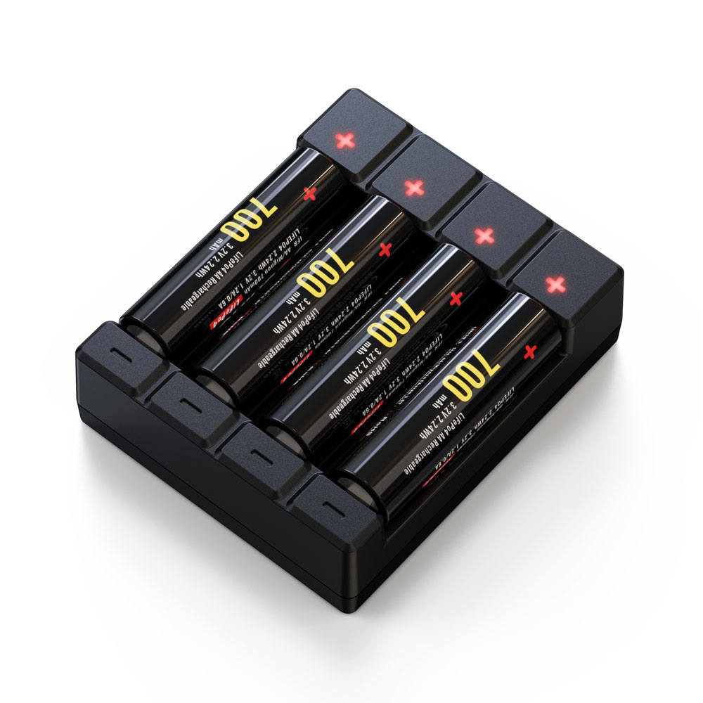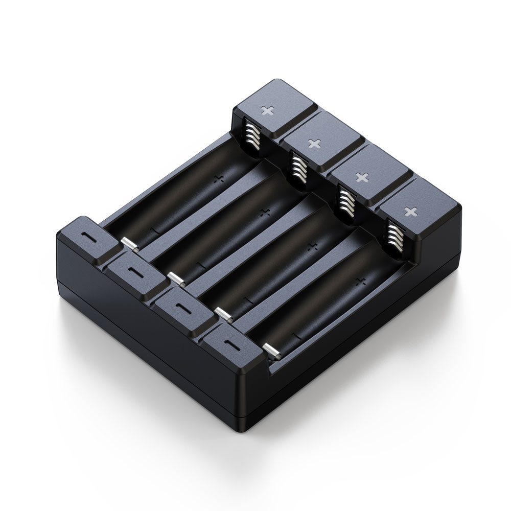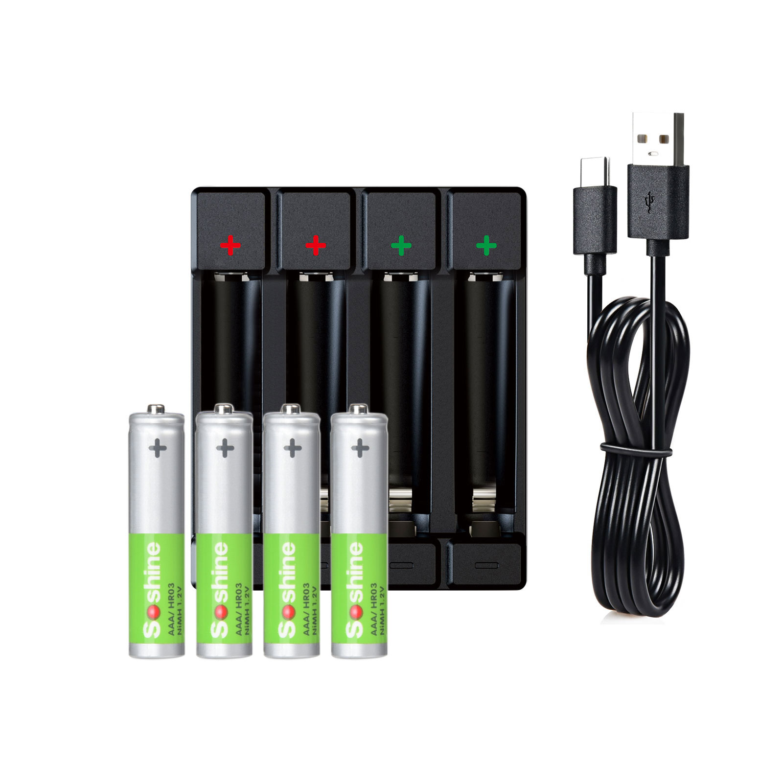 Soshine 1-4PCS AA /AAA NiMH /Li-ion /2-USB Battery Charger Specification: Designation:Smart AA/AAA NiMH /Li-ion Battery Charger Model: C4 Color: Black /White Charge Capability:"AA" (1-4) "AAA" (1-4) Shut off Mechanism:NiMH Battery Delta V Detection,Timer (18 hours) Charging Current: NiMH/Li-ion 1-4 X AA/AAA 500mA Charger Input : Micro USB /TYPE C, 5V 1A- 2A Charging indication: LED Display,Red-charging Green -complete Red flash- bad battery Primary