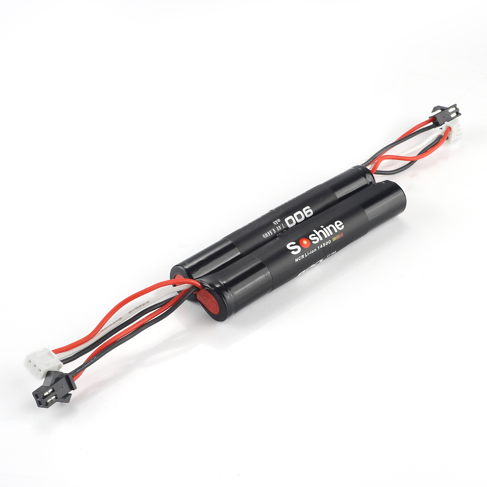 | Soshine Battery Pack 7.4V 900mAh ine Li-ion 14500 Model:14500x2-7.4V-8C Specification: System: Li-ion battery Type:14500 Capacity: 900mAh Rechargeable for 1000 times Peak Voltage: 8.4V Nominal/Working Voltage: 7.4V Maximum charge current: 1.5C Maximum discharge current: 8C Internal resistance: 48-50 mΩ Temperature: -40℃~60℃ Dimension: 14x110mm Weight: 50g |