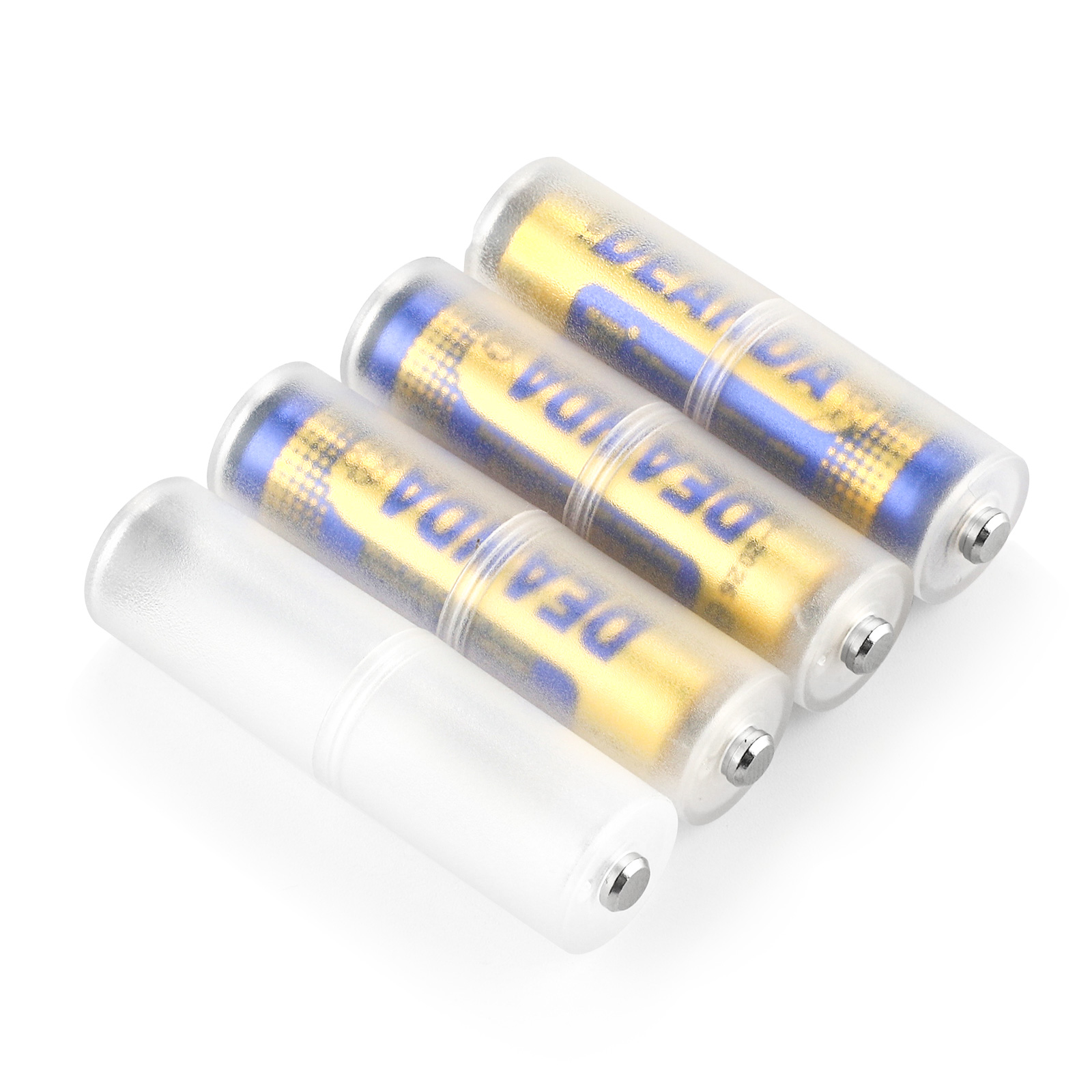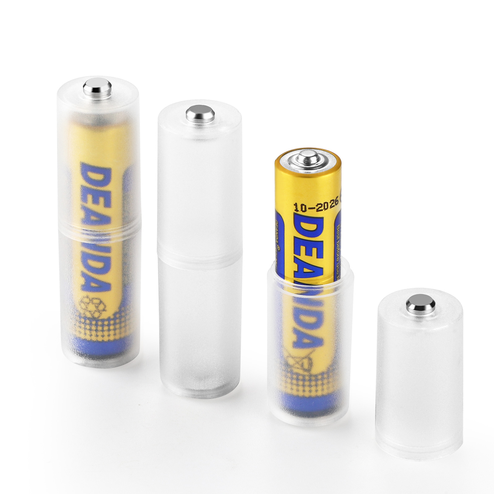 | AAA to AA Size Bar Code: 6951151532015 Model:AAA-AA(SBC-001) Product deion: Made of environmentally friendly material;small,easy to carry. Good processing,standby specification can use 1xAAA battery replacement AA battery. Both convenient and functional,great strength and strong tenacity. It is battery limit slot,the battery can be fixed in a good place. Weight: 4g Dimensions: D14.5x50.3mm Material:PP(Polypropylene) Colour: translucent, blue, green SBC-001 AAA to AA Battery Holder is a gadget to be close to home,at home,at the office,at the campsite,etc.