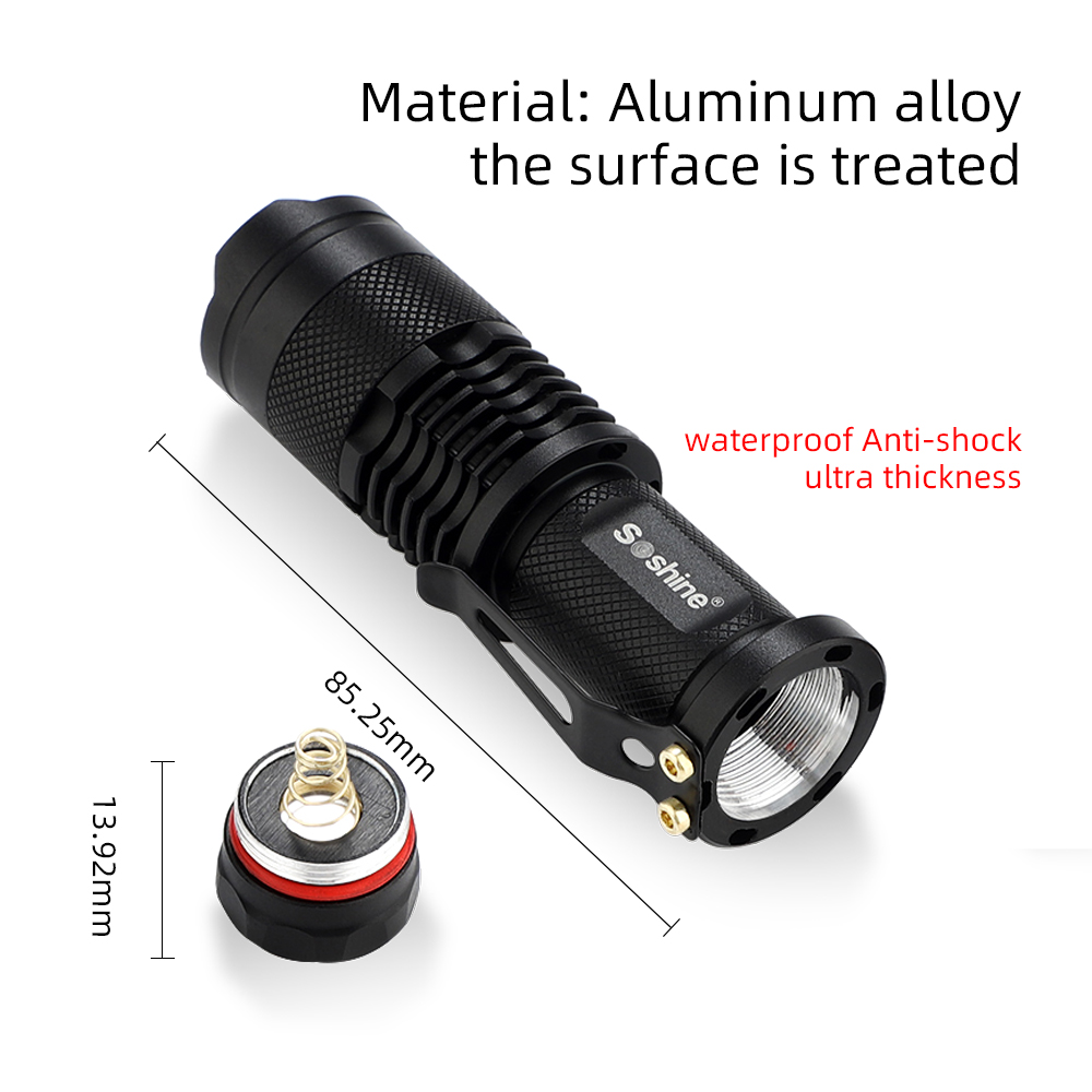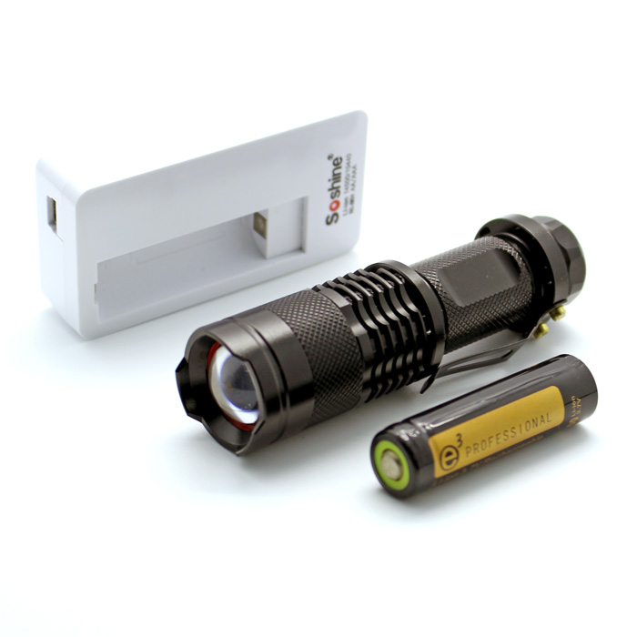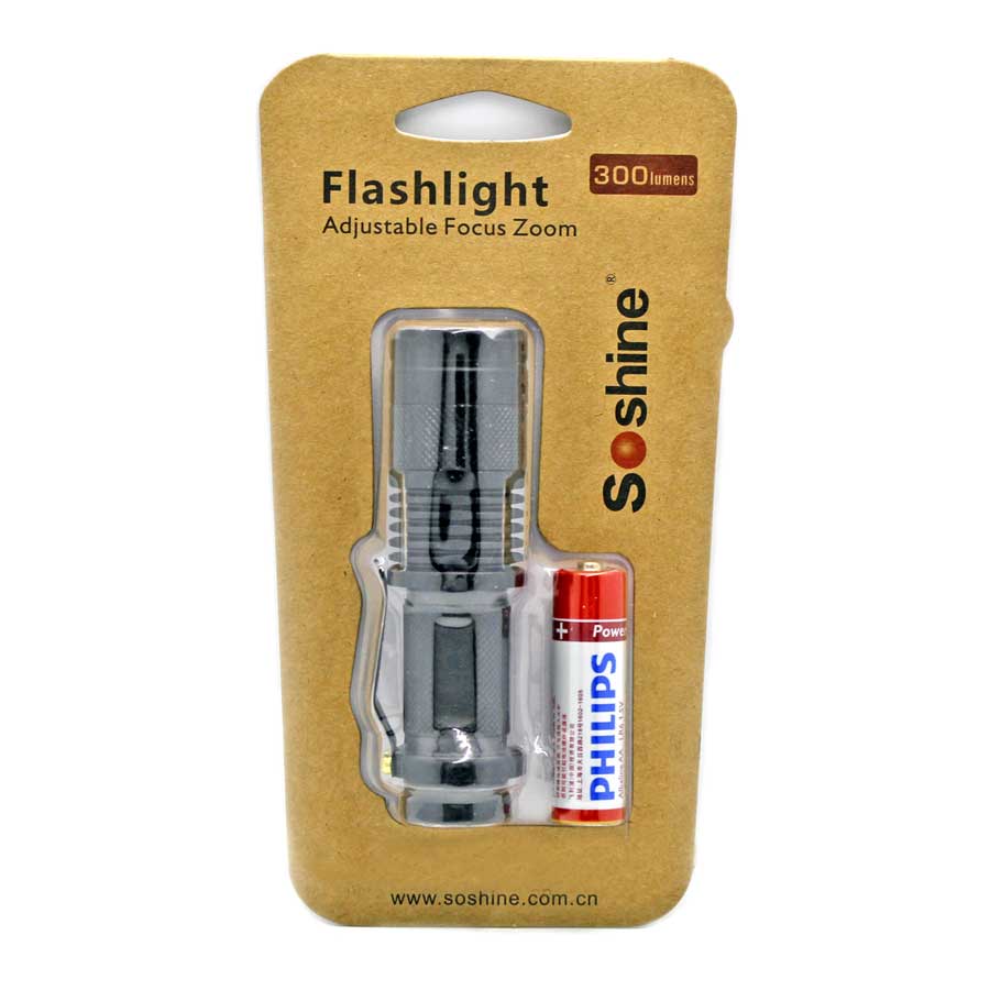 Soshine 300 Lumen Mini Led Flashlight Torch Adjustable Focus Zoom Light Lamp Bar Code: 6951151580009 Model: TC3
