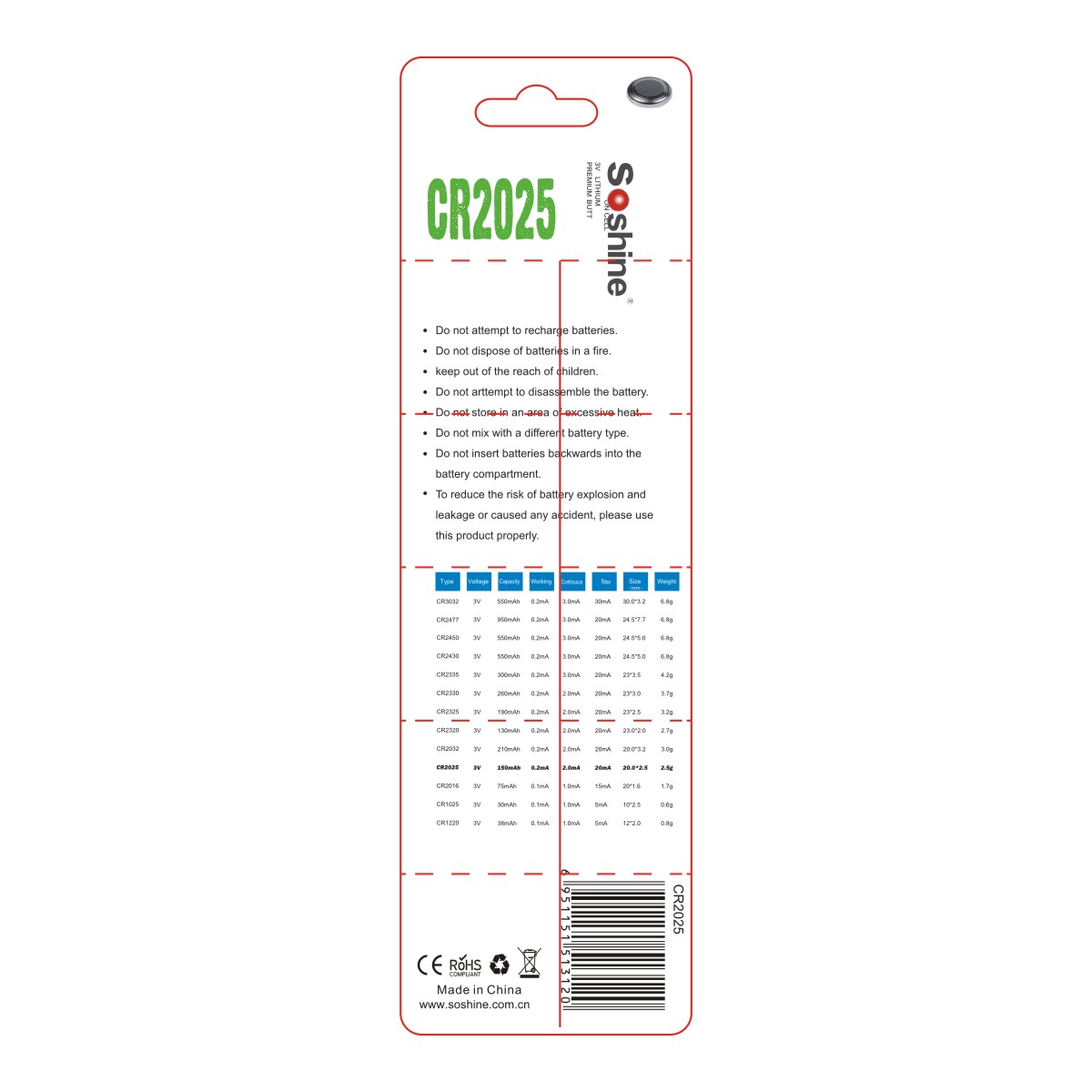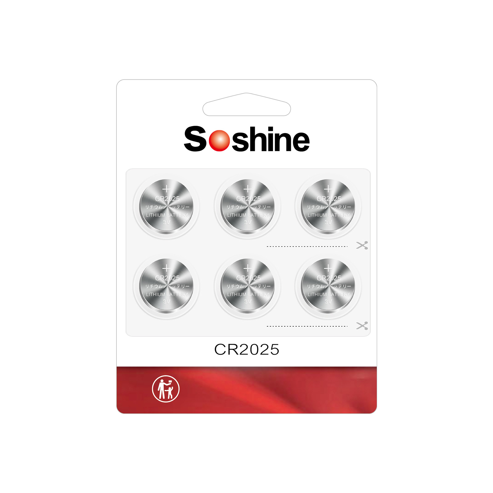 Soshine CR2025 Battery CR2025 Lithium 3v (1 Pack of 6)