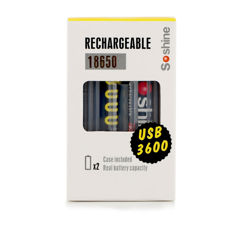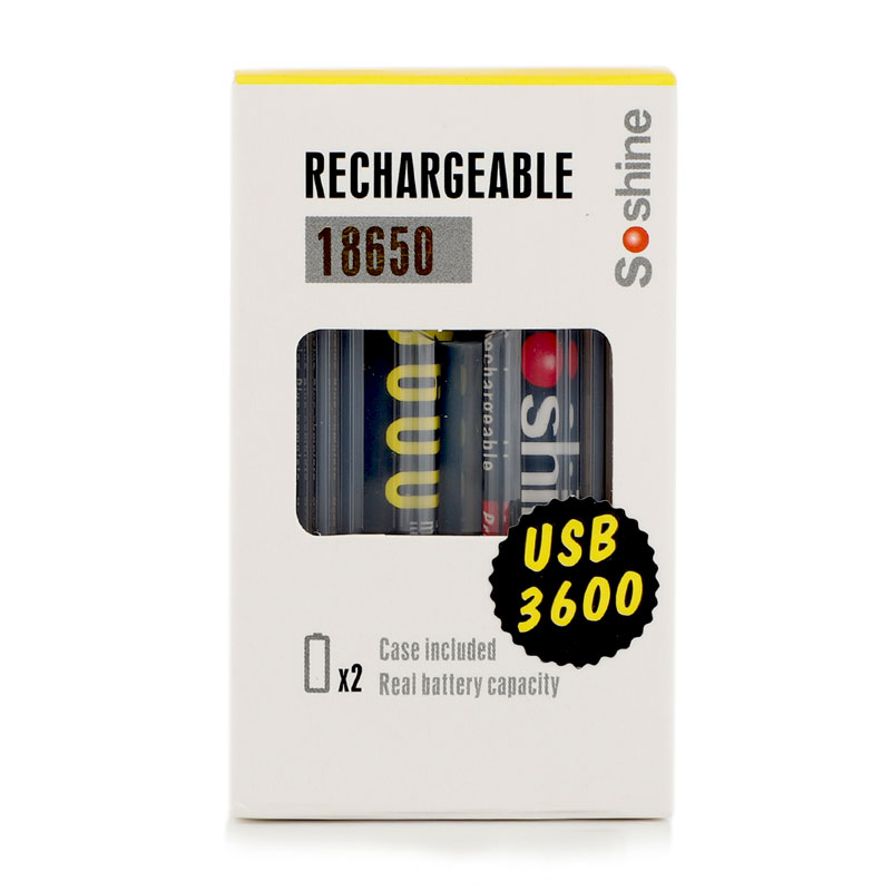 Soshine Li-ion 18650 Protected USB Rechargeable Battery : 3600mAh