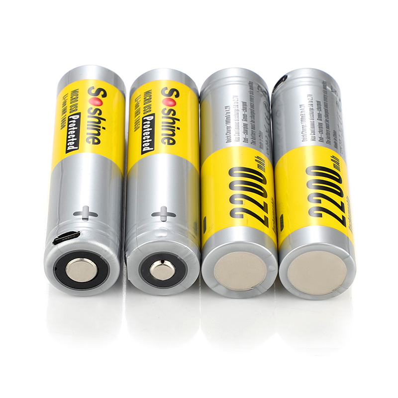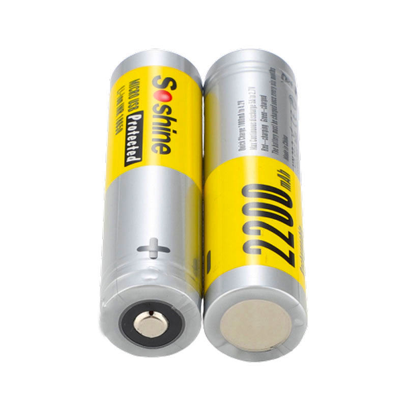 Soshine USB Rechargeable Batteries 3.7V 2200mAh Li-ion 18650 Batteries
