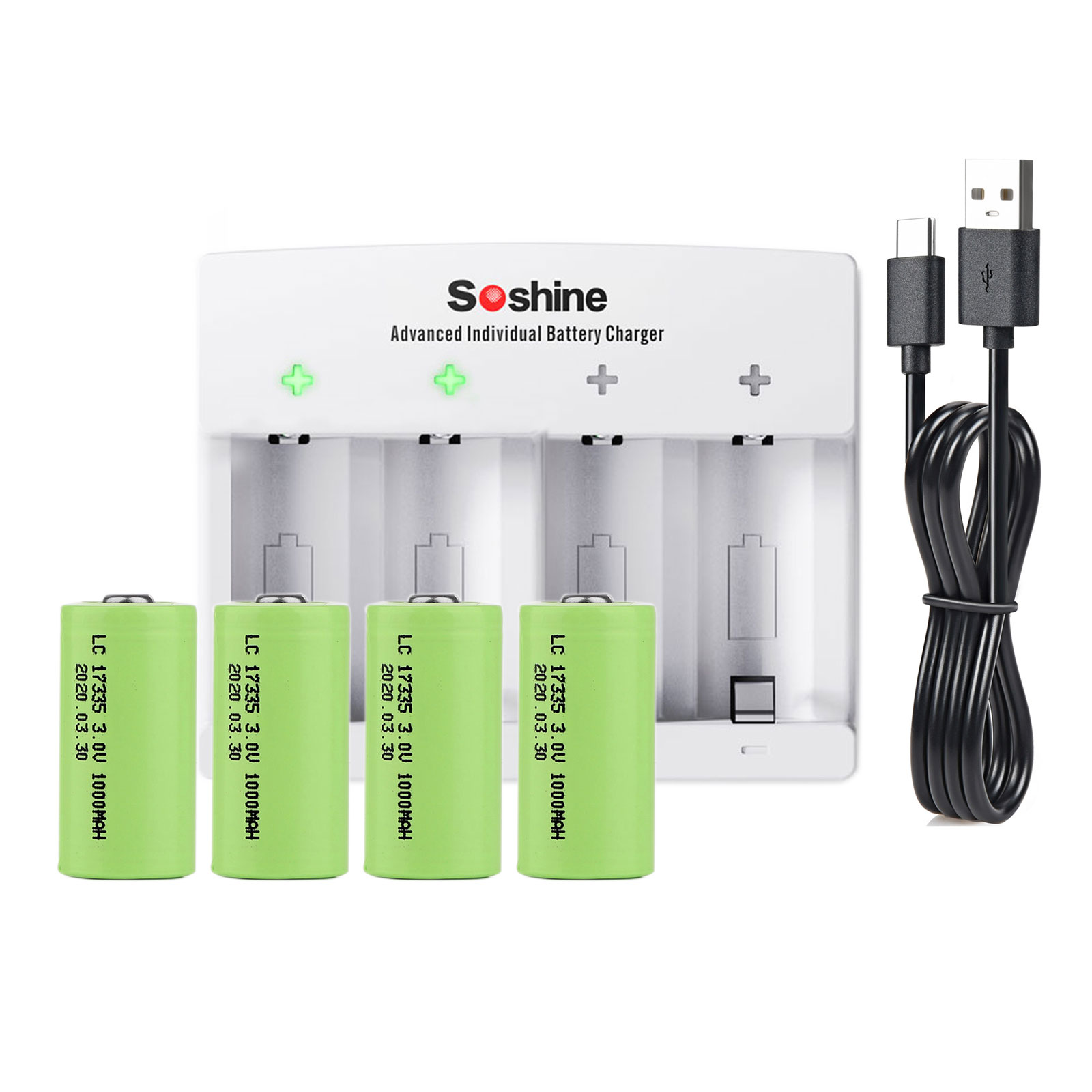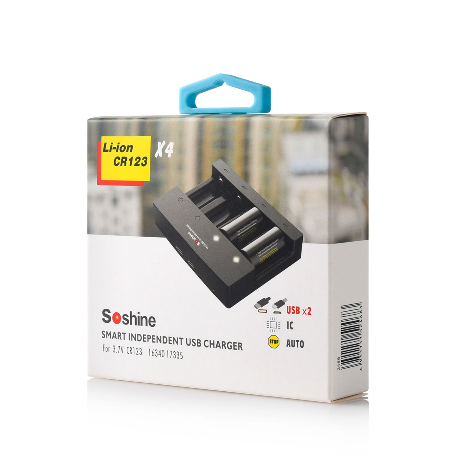 1-4PCS LiFePO4 RCR123/RCR2 Battery Charger| S4 Intelligent Speedy Battery Charger For 1-4pcs LiFePO4 RCR123 16340 17335 Bar Code: Model:S4(Fe) Quick charger This charger is an intelligent charger especially designed to charge for 1-4pcs LiFePO4 RCR123 / 16340 / 17335 3.6/3.7V Specification: Input: 1-2A micro USB /Type-C USB
