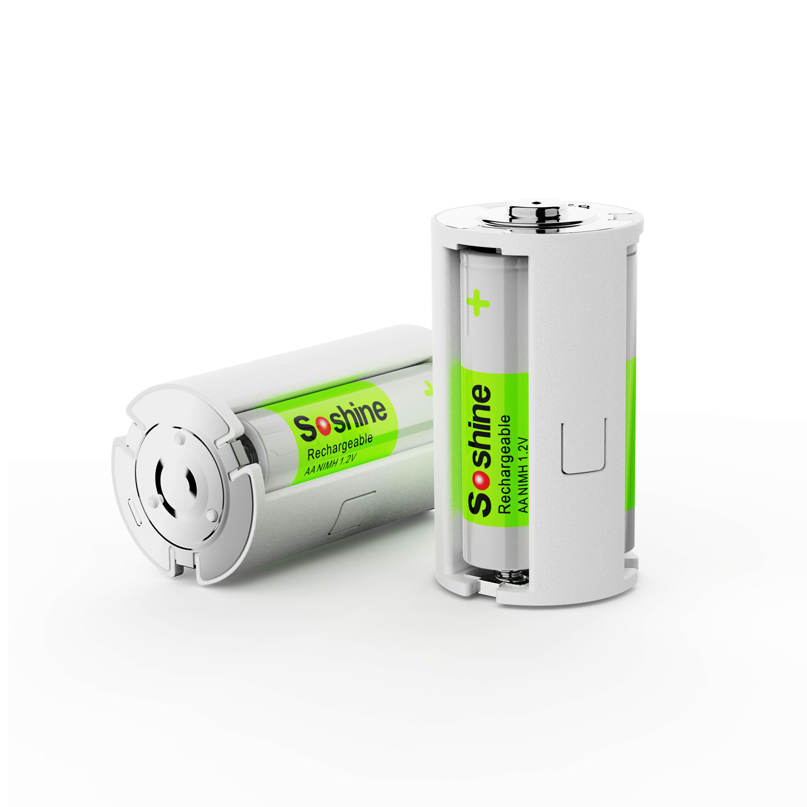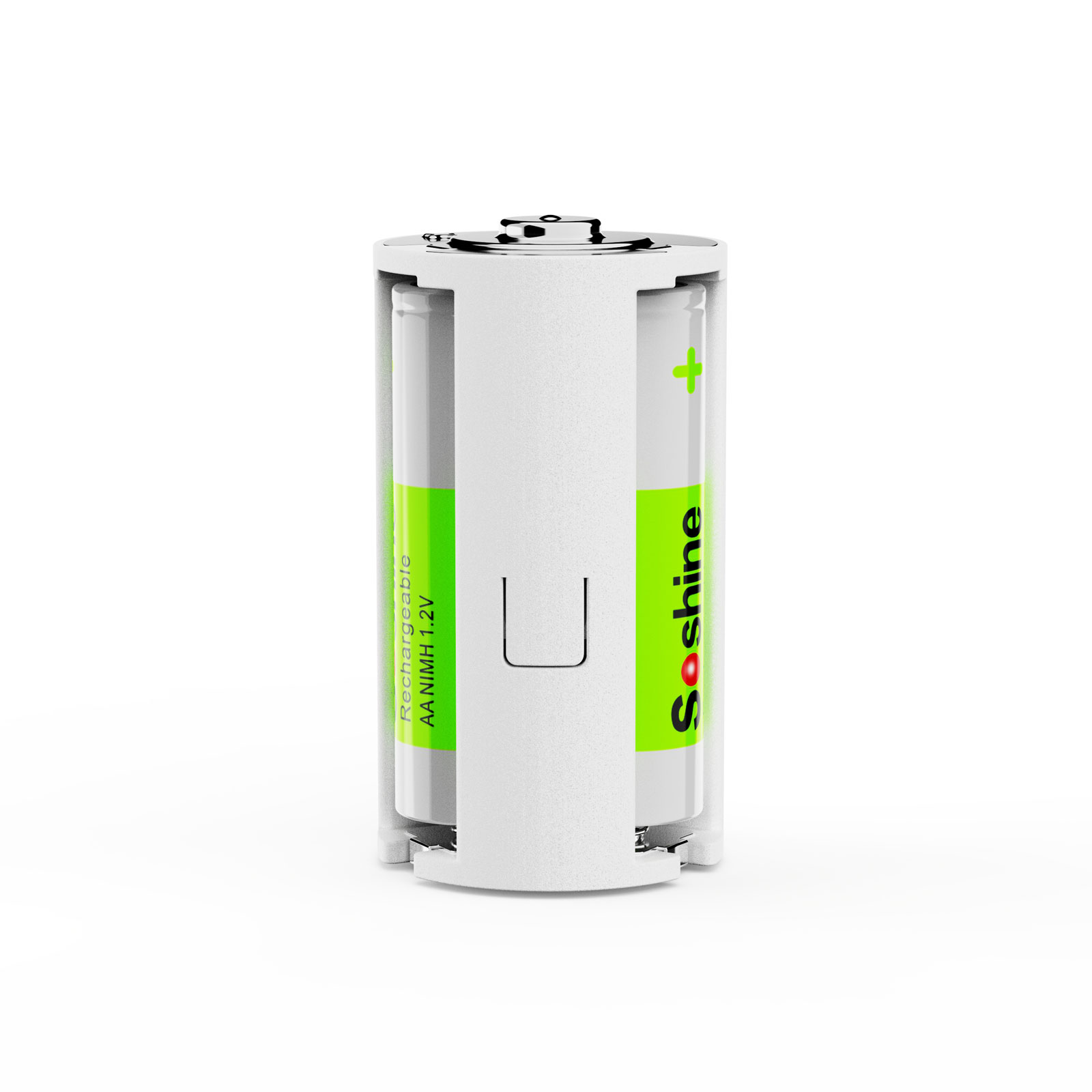 3pc AA to D Size Battery Adaptor Case | 3xAA-D 100% new and high quality. Keep your batteries organized and protected. It can fit 3pcs AA batteries as D size. Weight: 18.5g Dimensions: H 60.2 x D 32.5 mm Material:ABS Colour: white/black |